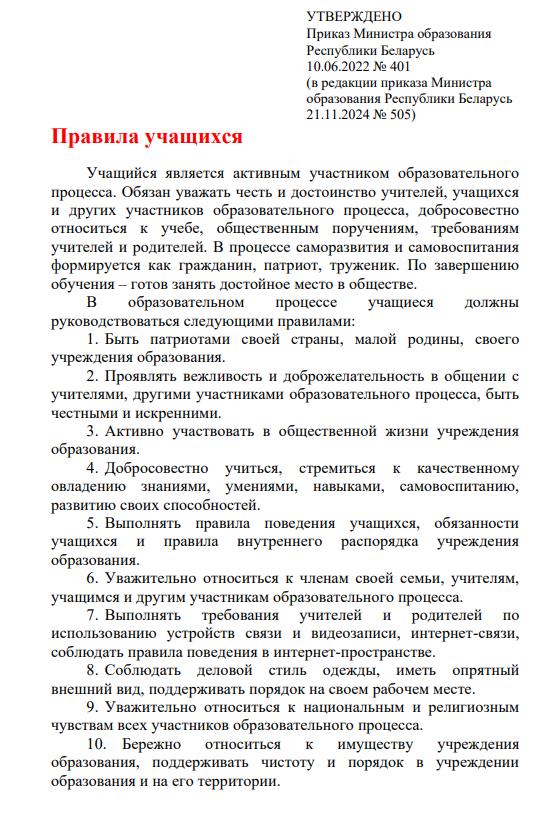 Правила учащихся